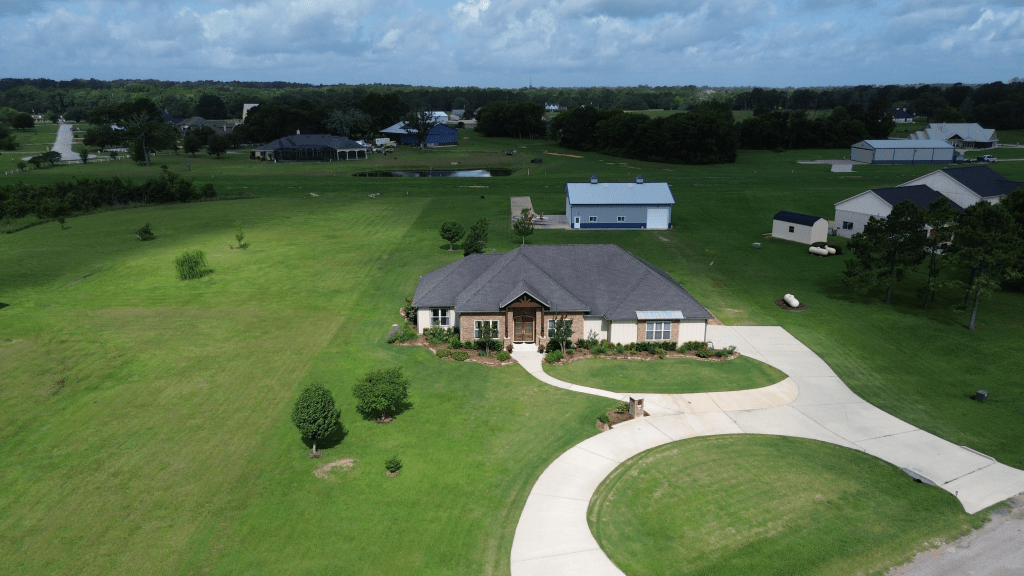 UNDER CONTRACT!Beautiful custom luxury home and hangar with workbench and office, sparkling pool located directly on the 3800×125′ turf runway XS09 in the Waverly Acres community near Houston.